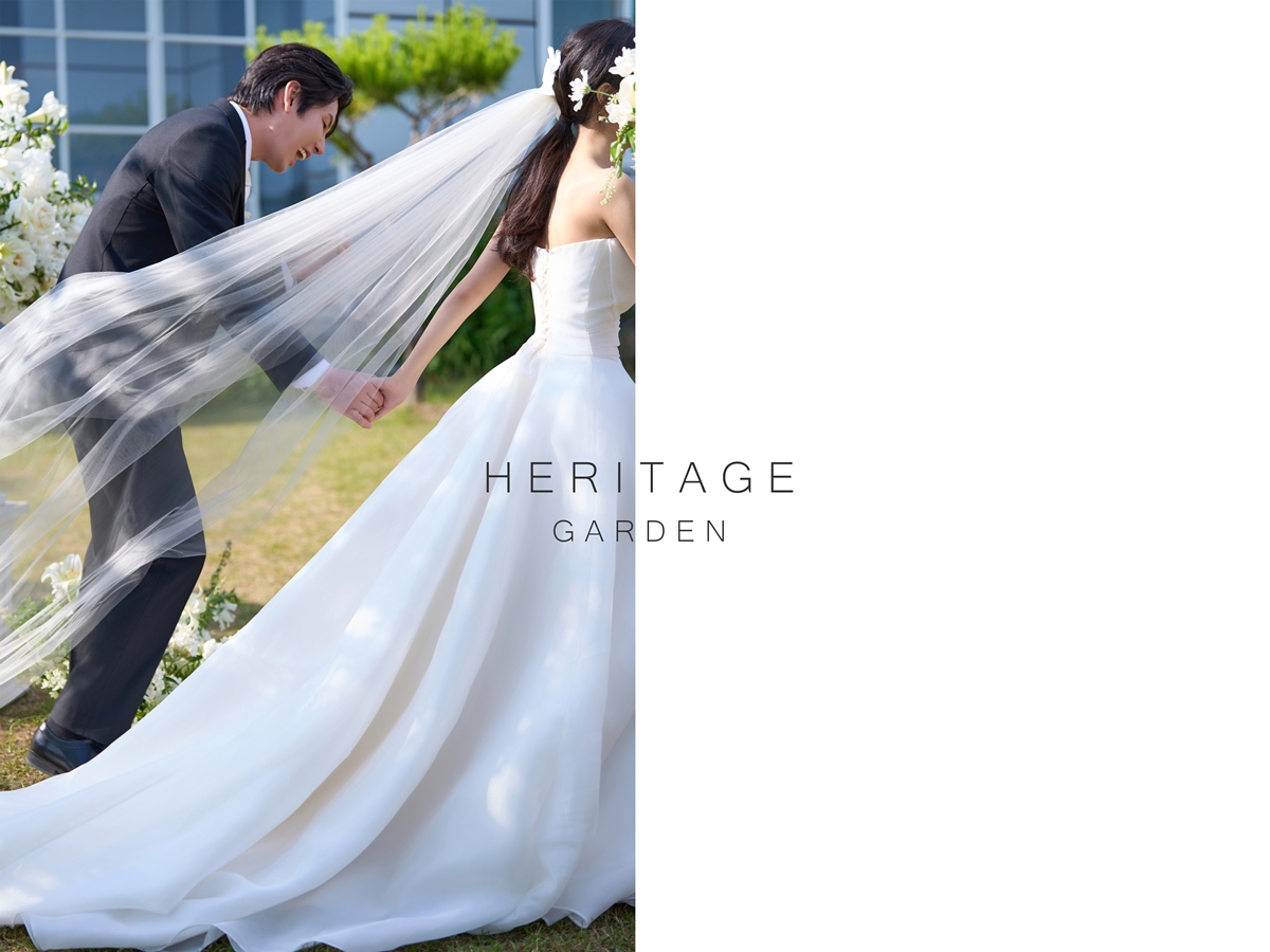 헤리티지가든은 투 앵글 디렉팅 방식으로 두 분의 웨딩씬을 함께 그려주는 투 앵글 디렉팅 시스템을 적용하며, 정원, 실내, 로드(Scene) 등에서 리허설 이상의 새로운 시네마틱 웨딩 경험을 선사합니다. “당신의 순간은, 시간보다 오래 남습니다”라는 모토로, 감성과 영상미가 어우러진 기억을 오래도록 간직하게 해줍니다.